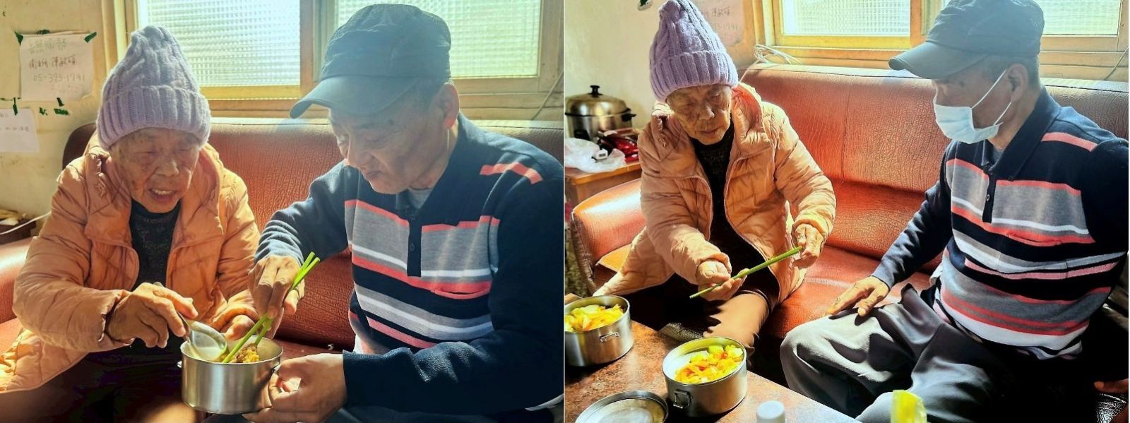 阿龍阿伯上午前往弘道的失智據點上課,午餐會帶兩個便當回家,與彩雲阿媽一起吃,彩雲阿媽會把便當分成兩餐,週末據點休息時,母子倆就以白粥配罐頭度日。