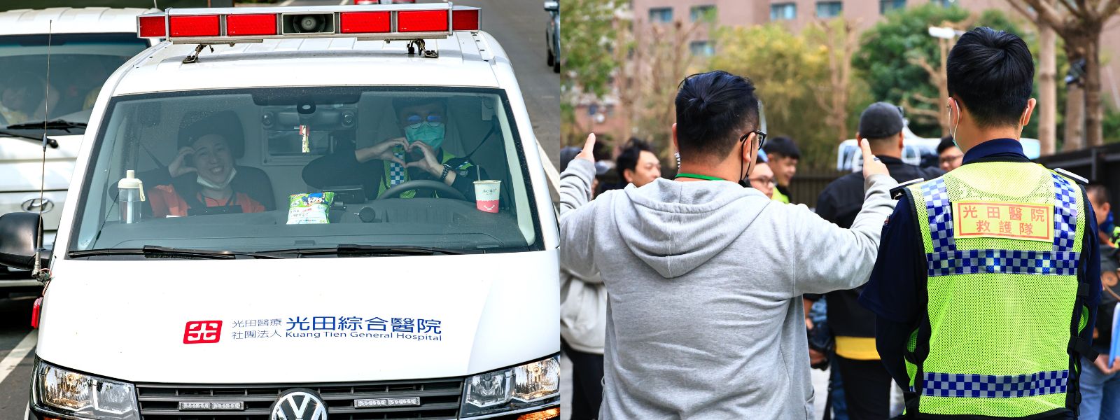 自 2019 年起,光田綜合醫院每年皆派出救護車全程隨行。只要路途中出現任何突發狀況,救護車便會啟動第一時間的緊急處置,甚或立刻鳴笛、穿梭車陣,用最快的速度將長輩送往醫院,確保即時獲得必要的醫療協助。這份專業而即時的醫療支援,讓這趟環島之行不再只是對體力的考驗,而是一段被細心守護的旅程。